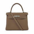 HERMES エルメス ハンドバッグ ケリー28 内縫い エトープ (エトゥープ) トゴ シルバー金具 新品