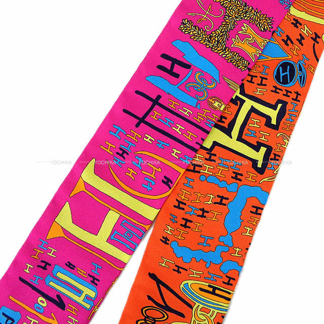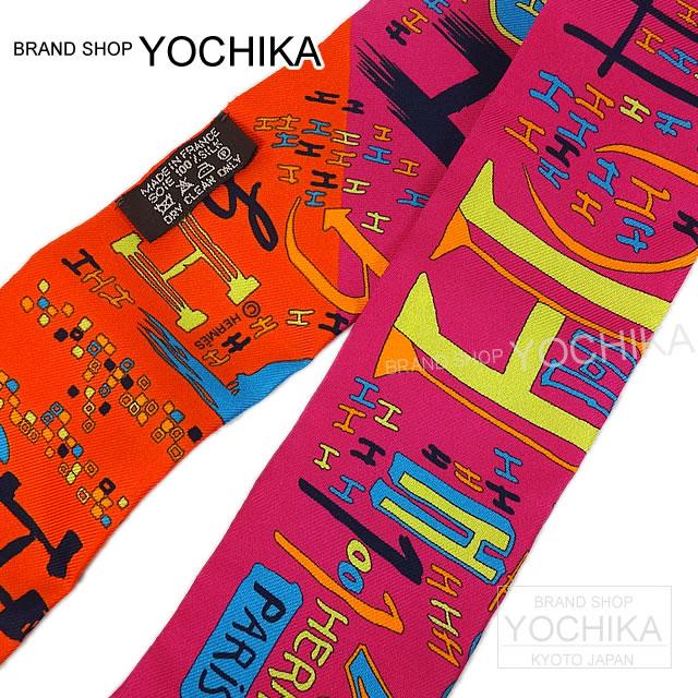 | HERMES エルメス ツイリー スカーフ "1001H" オレンジXフューシャXブルー シルク100% 新品未使用 |