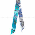 | HERMES Twilly Scarf "Mythiques Phoenix / Coloriages" Lagon/Bleu/White Silk100%[Never used][Authentic] |