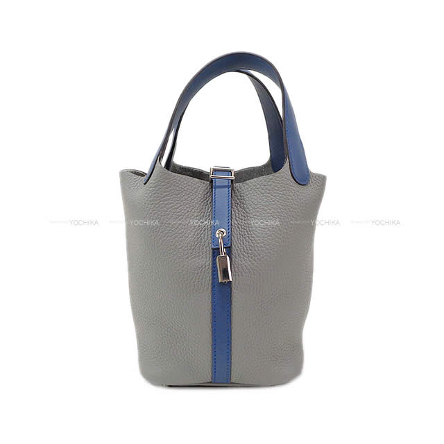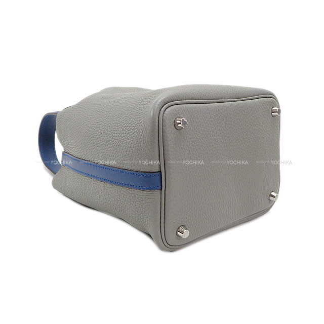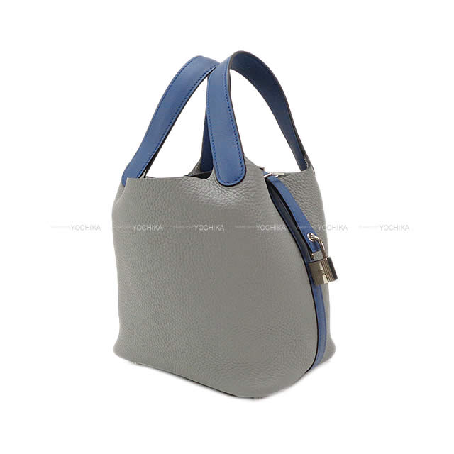| HERMES Handbag Picotin Lock 18 PM Touch Gris Mouette/Bleu Agate Taurillon Clemence/Veau Swift Silver HW Stamp A[EXCELLENT][Authentic] |