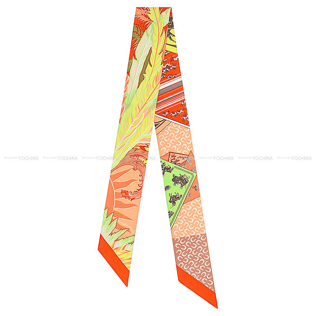 | 2018SS NEW HERMES Twilly Scarf "Cheval Phoenix" Vert/Orange/Jaune vif Silk100%[Brand new][Authentic] |