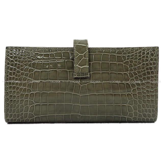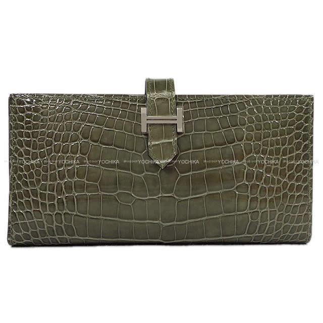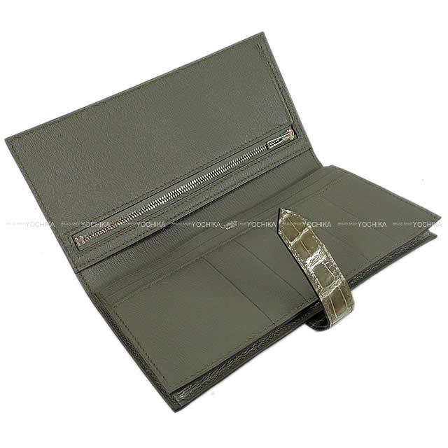| HERMES エルメス 長財布 ベアンスフレ トゥルティールグレー (グリトゥルトゥレール) クロコダイル アリゲーター シルバー金具 T刻印 新品未使用 |