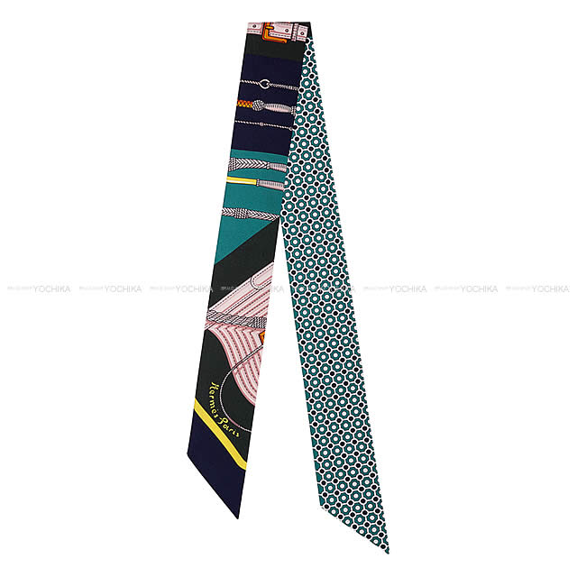 | 2018 A/W NEW HERMES Twilly Scarf "Clic Clac Modern Cannage" Vert/Marine/Vieux rose Silk100%[Brand new][Authentic] |