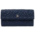 | 2019年春夏 プレコレクション 新作 CHANEL シャネル カメリア エンボス フラップ 長財布 ネイビーブルー ラムスキン A82283 新品 |