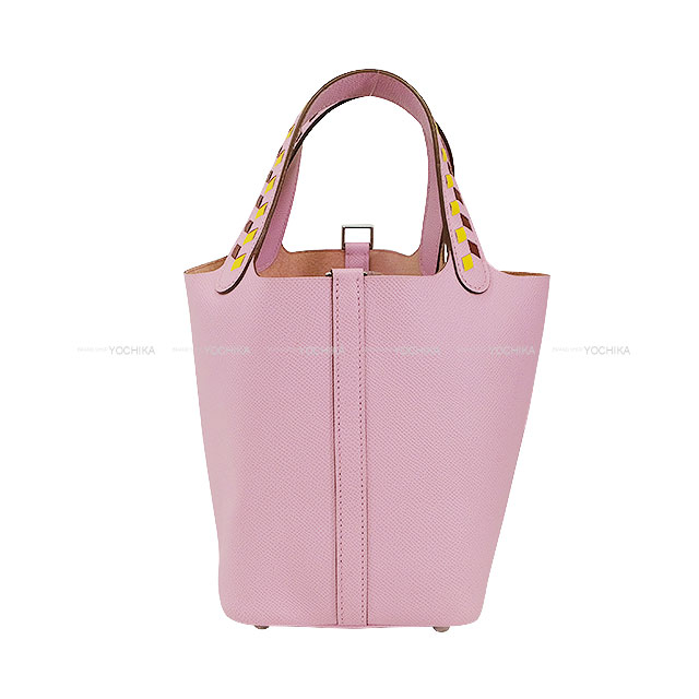 | HERMES エルメス ハンドバッグ ピコタンロック 18 PM トレサージュ・ドゥ・キュイール シェヴロン モーヴシルベストル/ルージュアッシュ/ジョーヌナプル (ジョーヌナポリ) エプソン シルバー金具 Y刻印 新品未使用 |