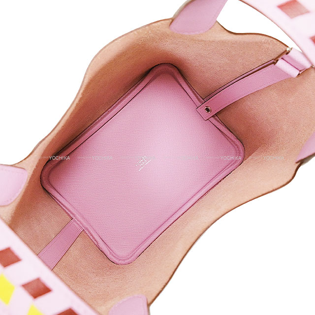 | HERMES Handbag Picotin Lock 18 PM Tressage De Cuir Chevron Mauve sylvestre/Rouge H/Jaune de Naples Veau Epsom Silver HW Stamp Y[EXCELLENT][Authentic] |