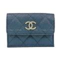 | CHANEL Matelasse Aurora Compact Tri-fold Wallet Blue Grained Lambskin GHW AP0310[Brand New][Authentic] |