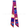 HERMES Twilly Scarf "CAMAILS" Plomb/Framboise/Orange Silk100%[Never used][Authentic]