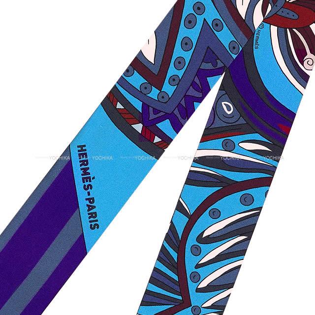 | HERMES エルメス ツイリー スカーフ "マハラニの庭" ブルーコバルト/ボルドー シルク100% 新品 |