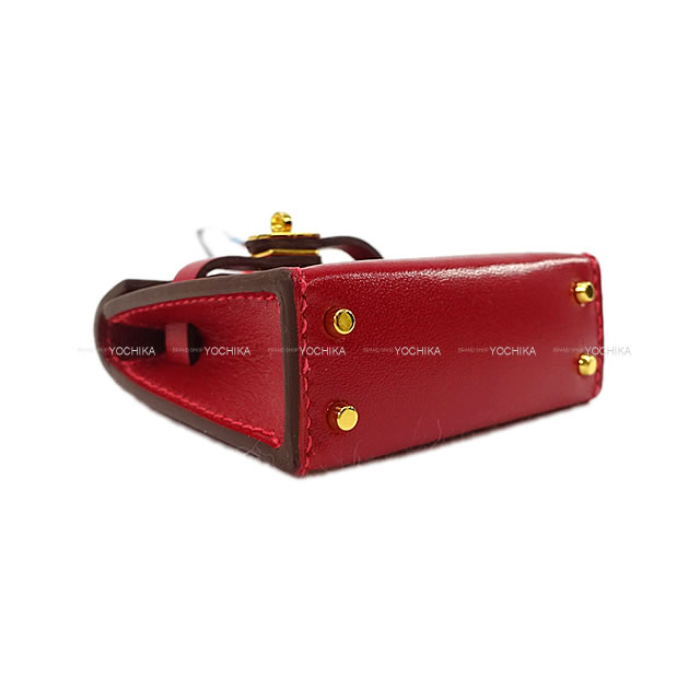 | HERMES bag charm Kelly Twilly MiniMini Rouge Vif Veau Tadelakt Gold HW Stamp Z[BRAND NEW][Authentic] |