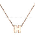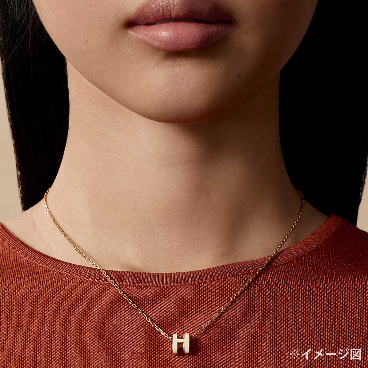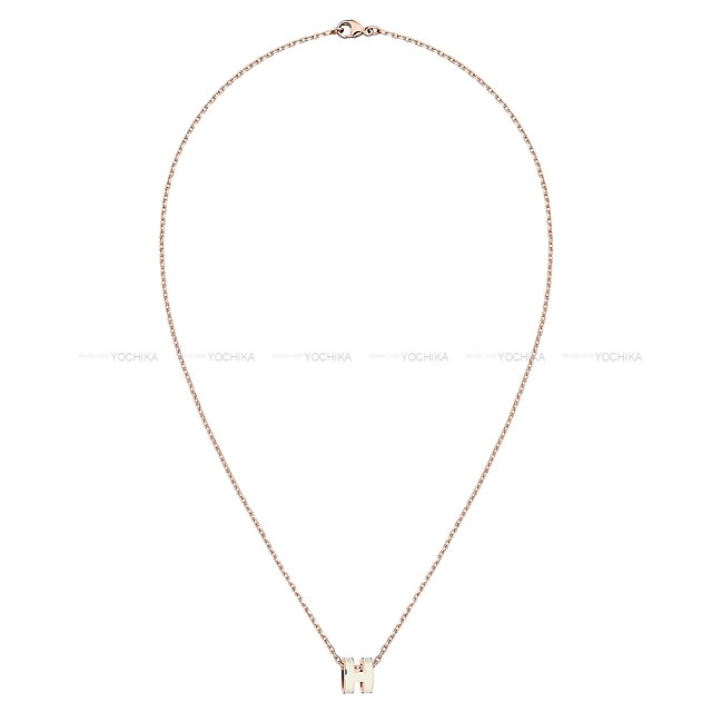 | HERMES necklace Mini Pop H Pendant Blanc (White) Rose gold plated/Lacquer[BRAND NEW][Authentic] |