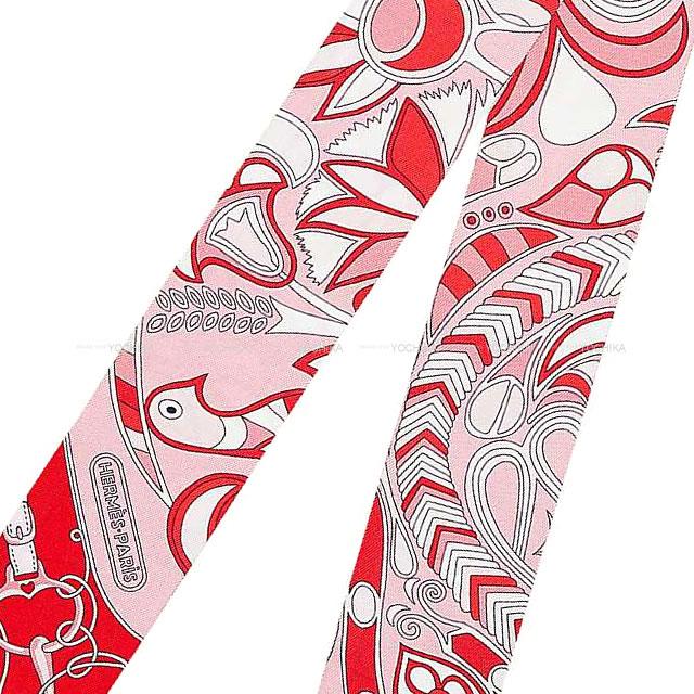 HERMES エルメス スカーフ ツイリー 民俗学 ローズ/ルージュ/白 シルク100% 新品