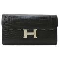 | HERMES Constance Long Wallet Noir(Black) Crocodile alligator Mat SHW[Never used][Authentic] |