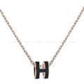HERMES necklace Mini Pop H Pendant Noir (Black) Rose gold plated palladium/Lacquer[BRAND NEW][Authentic]