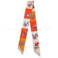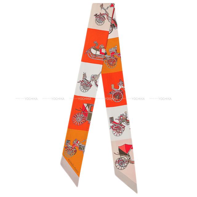 | 2021 S/S HERMES scarf Twilly Voitures Exquises Orange/Beige/Kaki Silk100%[NEVER USED][Authentic] |