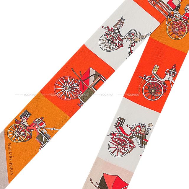| 2021年 春夏 HERMES エルメス スカーフ ツイリー 精巧な馬車 オレンジ/ベージュ/カーキ シルク100% 新品未使用 |