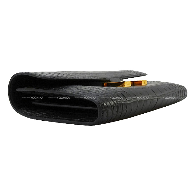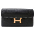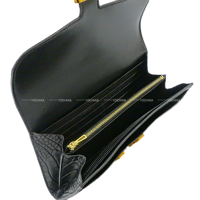 HERMES long wallet Constance Long Wallet Noir (Black) Crocodile Alligator Mat Rose Gold HW Stamp D[NEVER USED][Authentic]
