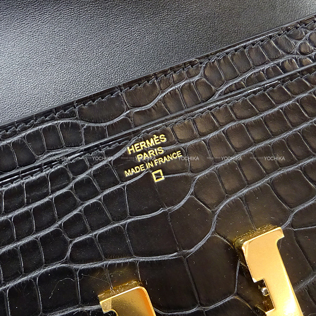 HERMES エルメス 長財布 コンスタンスロング 黒 (ブラック) クロコダイルアリゲーターマット ローズゴールド金具 D刻印 新品未使用