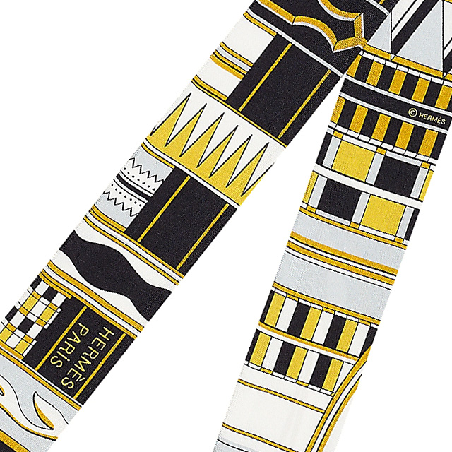 | 2021 S/S HERMES scarf Twilly Voltes et Pirouettes Noir (Black)/Ocre/Blanc (White) Silk100%[BRAND NEW][Authentic] |