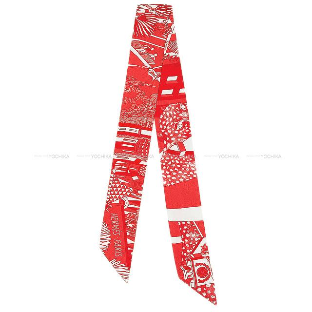 | HERMES Twilly Scarf "ANIMA POLIS" Rouge/Blanc(White) Silk100%[Brand new][Authentic] |
