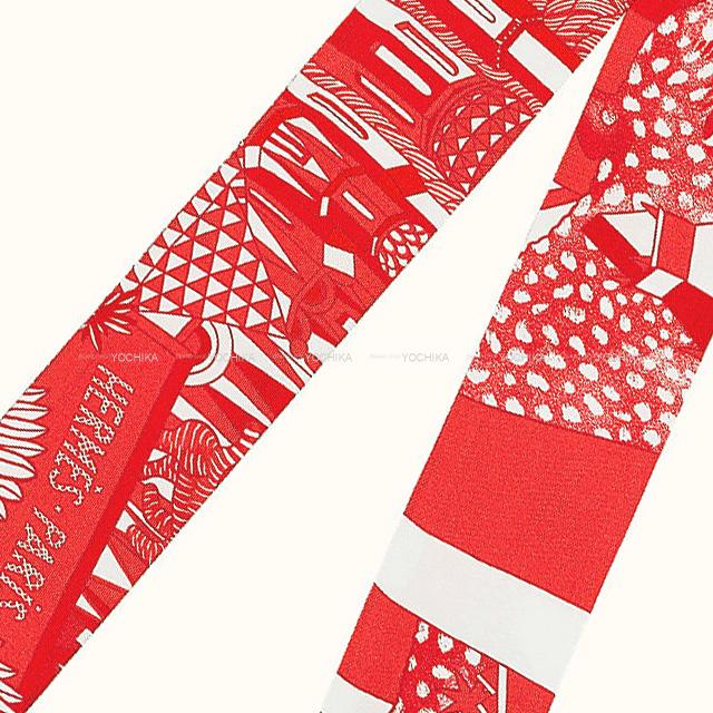 | HERMES エルメス ツイリー スカーフ "アニマポリス" ルージュ/白(ホワイト) シルク100% 新品 |
