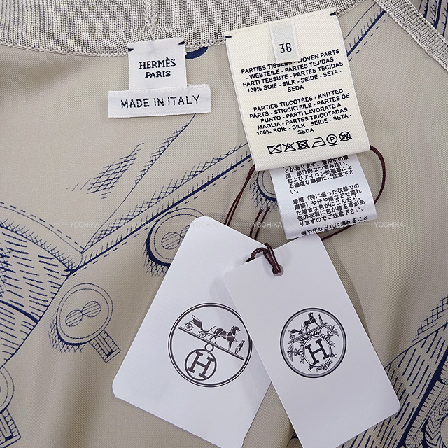 | 2021年秋冬新作 HERMES エルメス カーディガン ツイルレーヌ ベルト付 ロングジレ ベスト ズアヴとドラゴン #38 ブランゴム シルク100% 新品未使用 |
