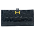 | HERMES long wallet Bearn Soufflet Bleu Baltique Crocodile Alligator Lisse Gold HW Stamp Y[BRAND NEW][Authentic] |