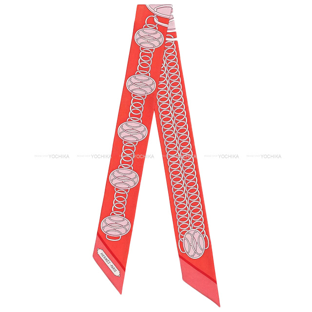 | HERMES エルメス スカーフ ツイリー リフトプロフィール グレナデン/コーラル/パルム シルク100% 新品未使用 |