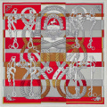 | HERMES エルメス スカーフ カレ45 ガヴロッシュ デッラ・カヴァッレリア 白(ホワイト)/ルージュ/タバック シルク100% 新品 |