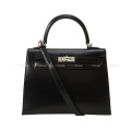 HERMES Shoulder bag Kelly25 Sellier Noir (Black) Box Calf Silver HW Stamp Z[BRAND NEW][Authentic]