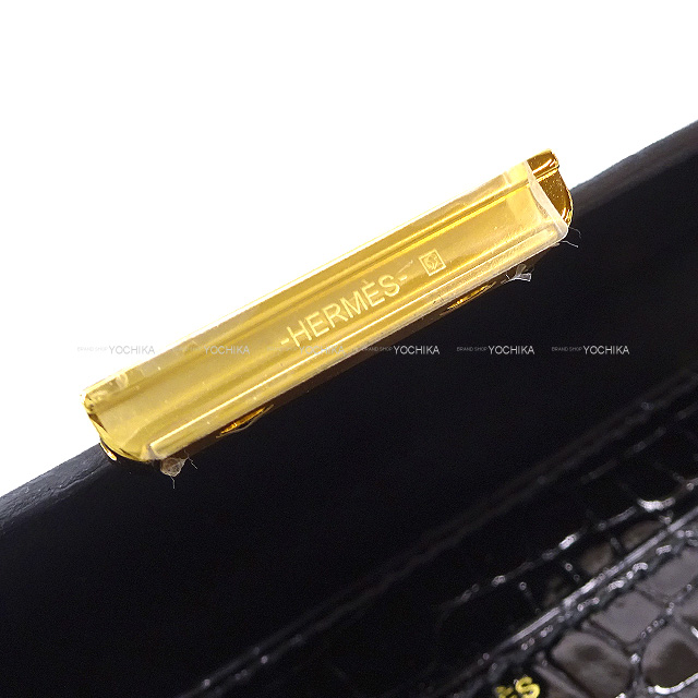 | HERMES long wallet Constance Long To Go wallet Noir (Black) Crocodile Alligator Lisse Lacquer Gold HW Stamp Z[BRAND NEW][Authentic] |
