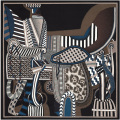 | 2022 AW HERMES scarf Carre 90 Pre-shoe LA SELLE IMAGINAIRE Black/Brun/Marine Beads/Silk100%[NEVER USED][Authentic] |