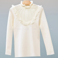 | 2022 AW HERMES Knit LADY'S frill neck top sweater Pull manches longues #38 Blanc Casse Cotton[NEVER USED][Authentic] |