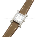 HERMES エルメス 腕時計 Hウォッチ ミニ TPM HH1.131 エトープ (エトゥープ) ステンレススチール/スイフト/ダイヤモンド シルバー金具 U刻印 新品