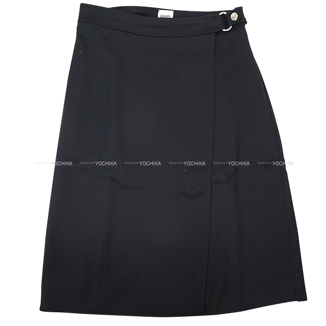 HERMES エルメス スカート レディース セリエボタン付 ラップ ミディ #34 黒 (ブラック) ヴィスコース53%/シルク37% シルバー金具 新品