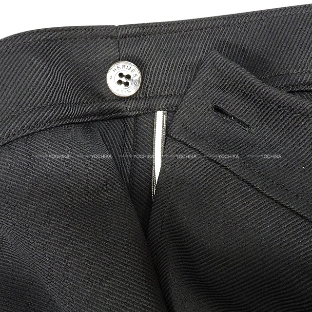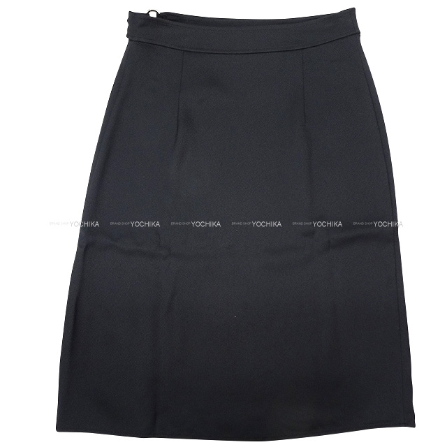 HERMES skirt Ladies Sellier Button wrap midi #34 Noir (Black) 53% viscose/37% silk Silver HW[BRAND NEW][Authentic]