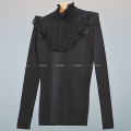 | 2022 AW HERMES Knit LADY'S frill neck sweater Pull manches longues #36 Noir (Black) Silk97%/Polyamide2%/Elastin1%[BRAND NEW][Authentic] |