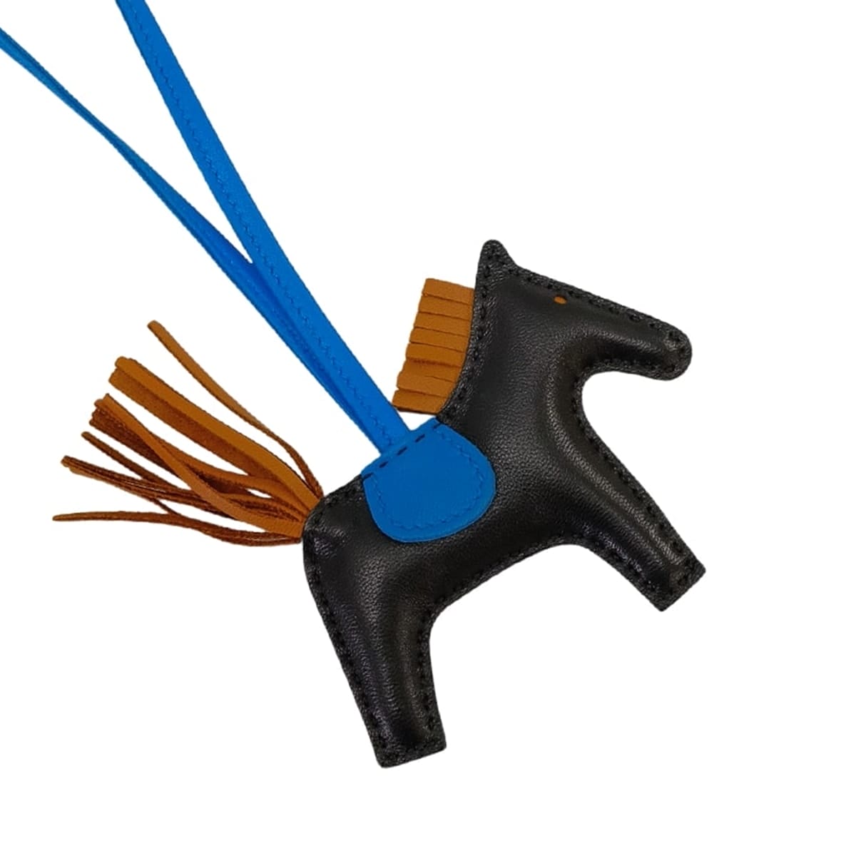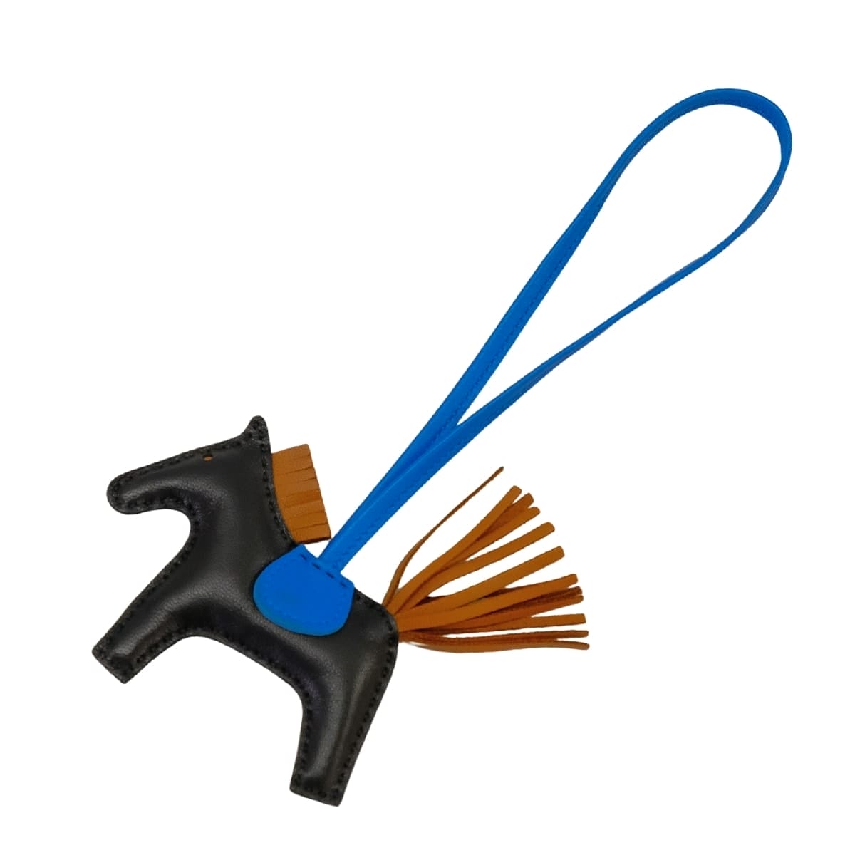 | HERMES エルメス バッグチャーム ロデオ PM 黒 (ブラック)/ゴールド/ブルーザンジバル アニョーミロ(ラム)/スイフト Z刻印 新品同様【中古】 |