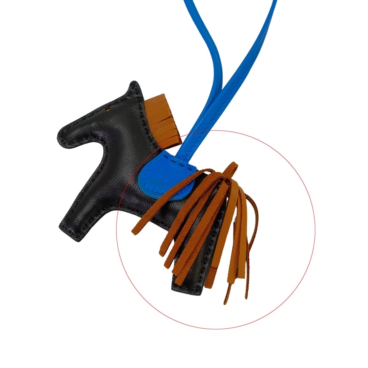 | [Pre-loved] HERMES bag charm Rodeo PM Noir (Black)/Gold/Bleu Zanzibar Agneau Milo/Veau Swift Stamp Z[LIKE NEW][Authentic] |