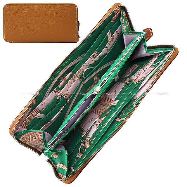 | HERMES long wallet Azap Silk in Ex-Libris Gold/Menthe (Mint)/Mauve sylvestre Veau Epsom/Veau Barenia/Silk100% Silver HW Stamp B[BRAND NEW][Authentic] |