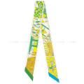 2023SS HERMES scarf Twilly HERMES Factory Suite Vert/Jaune Vif/Cream Silk100%[BRAND NEW][Authentic]