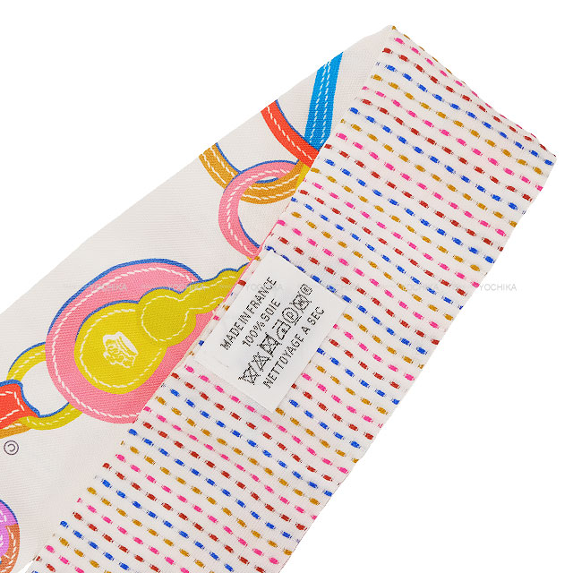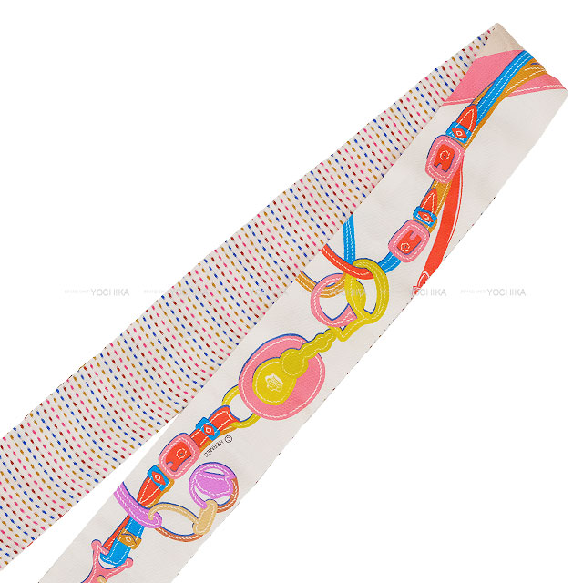 | [Pre-loved] 2023SS HERMES scarf Twilly Twins Brides de Gala Blanc (White)/Rose/Blue Silk100%[LIKE NEW][Authentic] |