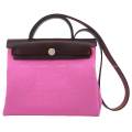 | HERMES Shoulder bag HerBag Zip PM 31 Verso Rose Bubblegum/Rubis Toile officier/Vache Hunter Silver HW Stamp Z[EXCELLENT][Authentic] |