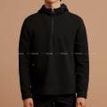 | HERMES Hooded sweatshirt Men's Half Zip Hermes Fit Lined Hood with Serie Buttons XXL Noir (Black) Cotton100% Silver HW[EXCELLENT][Authentic] |