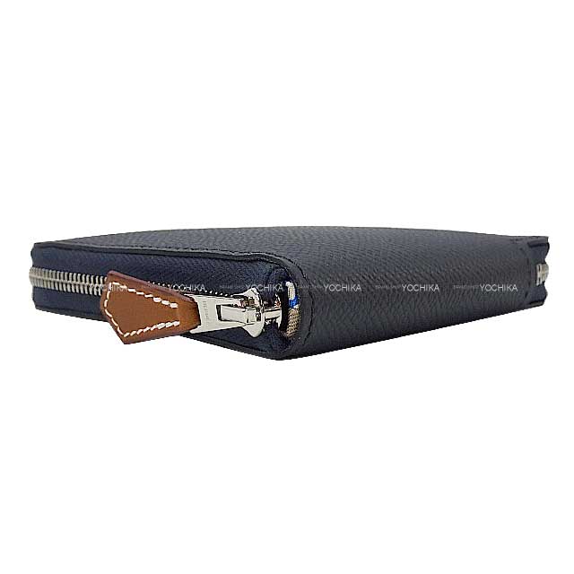 | [Pre-loved] HERMES Bi-fold wallet Azap Silk in Compact EN LIBERTE! Blue Indigo/Caban/Jaune Amber Veau Epsom/Veau Barenia/Silk100% Silver HW Stamp U[LIKE NEW][Authentic] |