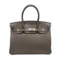 | HERMES Handbag Birkin30 Etain Taurillon Clemence Silver HW Stamp □Q[EXCELLENT][Authentic] |