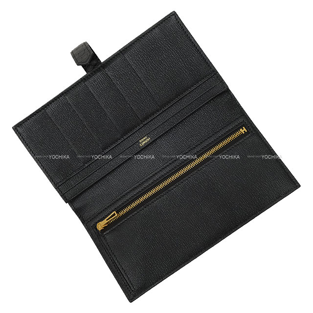 | HERMES エルメス 長財布 ベアンスフレ 黒 (ブラック) クロコダイル アリゲーターマット ゴールド金具 B刻印 新品未使用 |