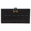 | HERMES long wallet Bearn Soufflet Noir (Black) Crocodile Alligator Mat Gold HW Stamp B[EXCELLENT][Authentic] |