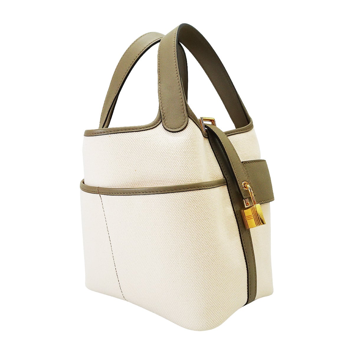 | [Pre-loved] HERMES Handbag Picotin Lock 18 PM Cargo Pockets Beige Marfa/Nata Toile Goeland/Veau Swift Gold HW Stamp B[LIKE NEW][Authentic] |