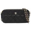 | CHANEL Shoulder bag Matelasse Zip WOC Clutch Pochette Noir (Black)/Bordeaux Graind Calf(Caviarskin) Champagne Gold HW A82527[EXCELLENT][Authentic] |